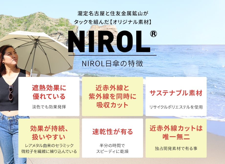 瀧定名古屋株式会社と住友金属鉱山株式会社がタッグを組んで開発した、レアメタル由来の近赤外線吸収ナノ微粒子から作った素材を使用しています。