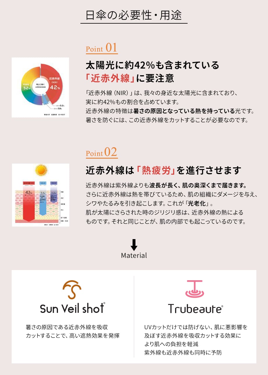 UVカットは当たり前で、より肌に悪影響がある近赤外線を吸収カットして肌への負担を軽減します。