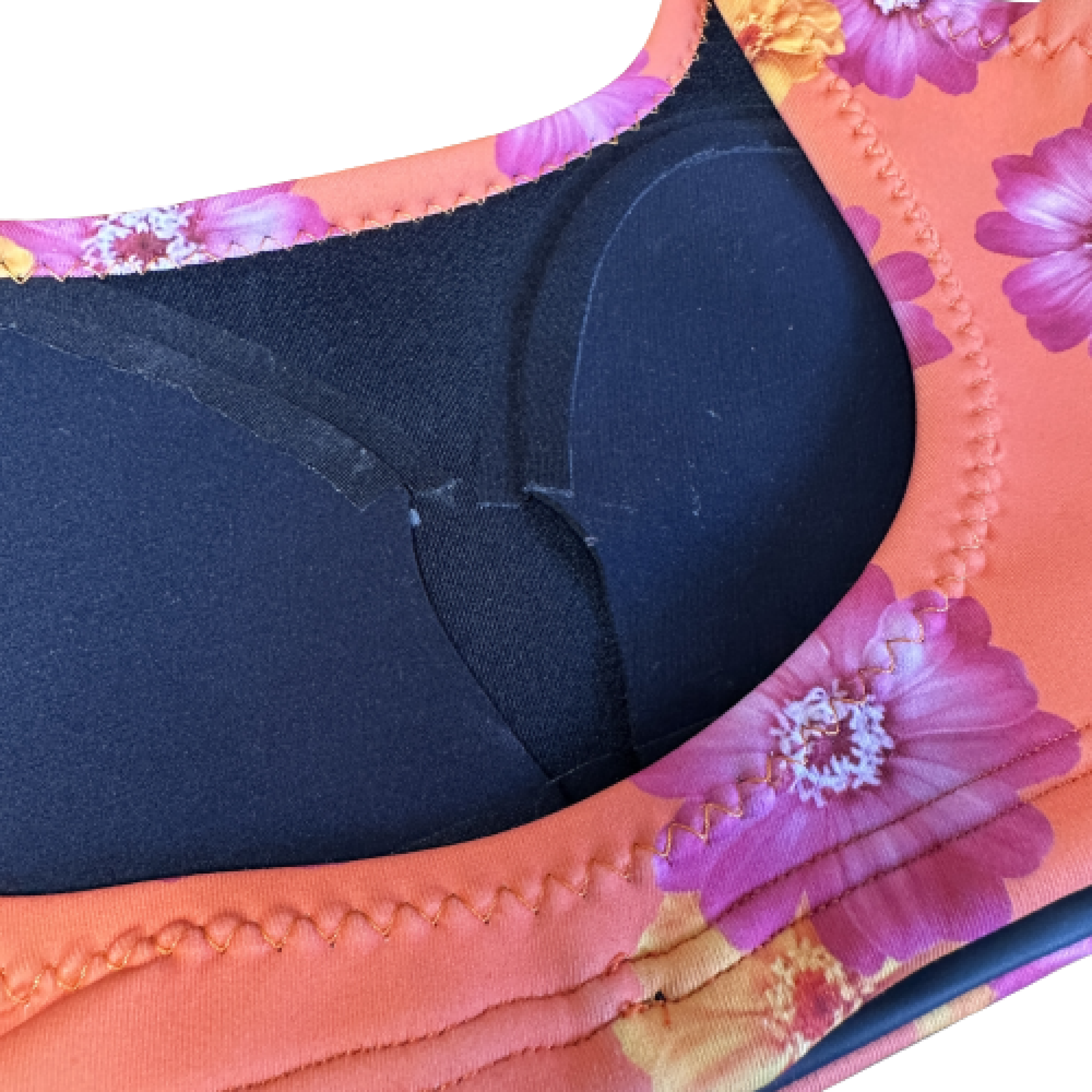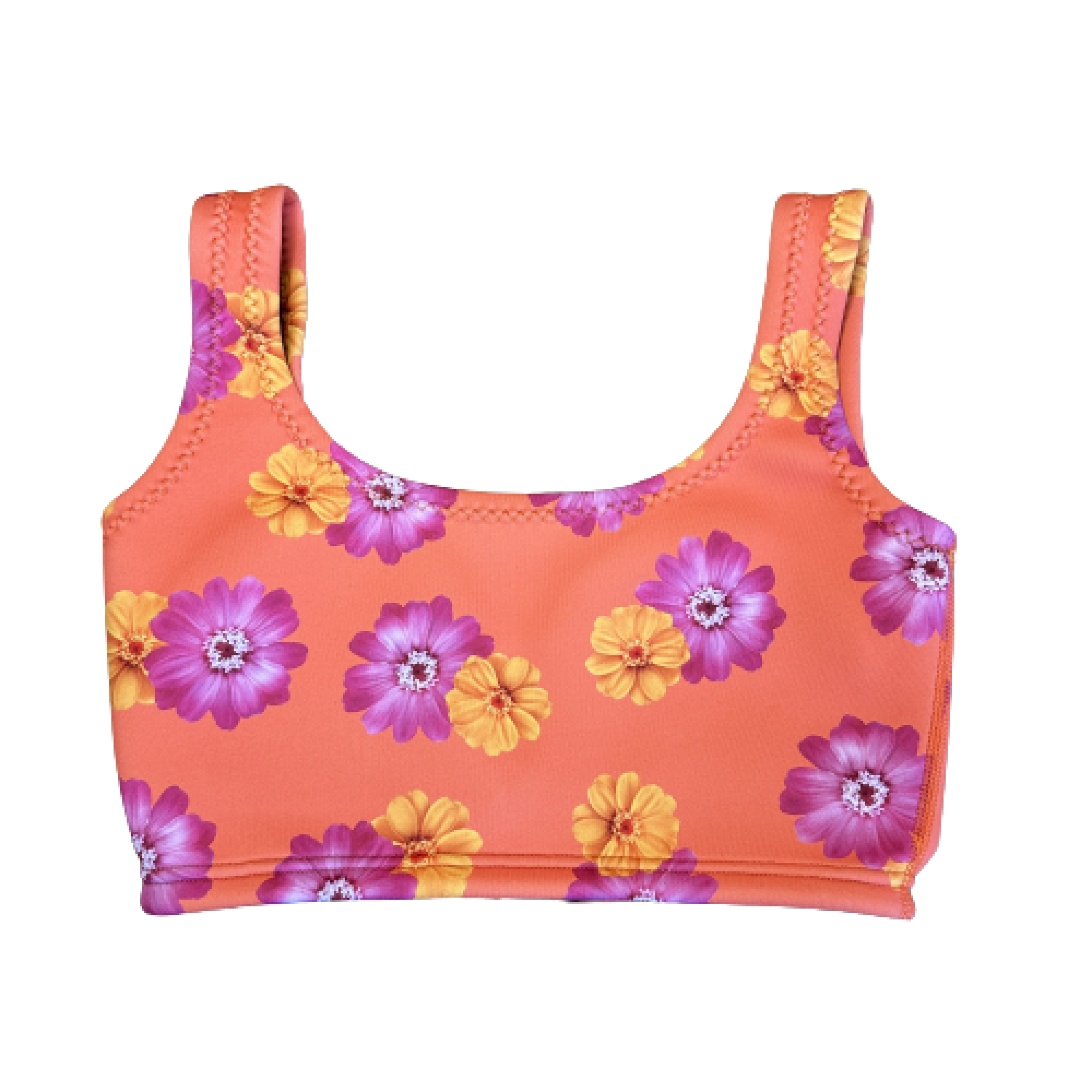 ウェットスーツ素材で作られたブラタイプの水着〈tops〉。サーフィンやビーチでのアクティビティ中でもズレる心配がなく、安心してお楽しみいただけます。すっきりとしたデザインで、スポーティーな印象を与える一方、胸元が少し空いた女性らしいデザインとなっています。